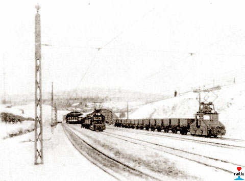 Les 2 locomotive électriques (Lahmeyer) à la mine