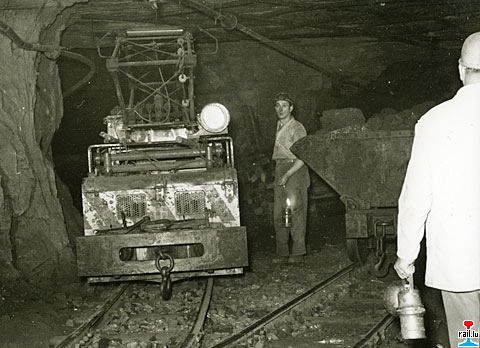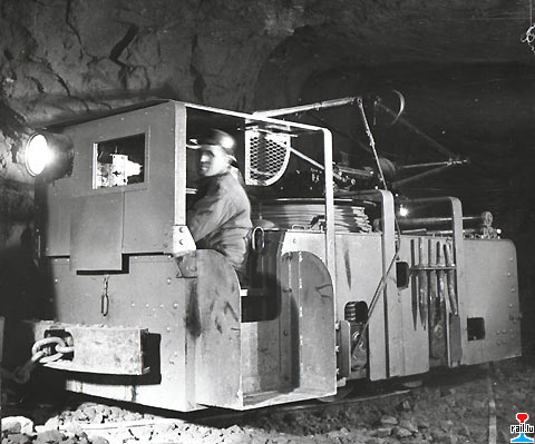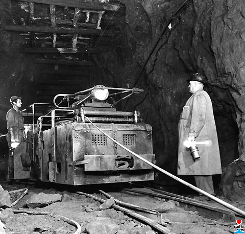 Locomotive électrique de mine SW LM1002 à la Mine Montrouge, vers 1935