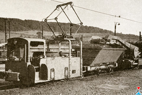 Ces locomotives à tambour enrouleur-dérouleur de câble permettent la desserte sans pose de fil de trolley, de longueurs de voies importantes. Le tambour spécial assure le balayage de 700 mètres de galerie de part et d'autre d'un centre d'alimentation fixe. L'application des machines dérouleuses au dur problème du chargement mécanique dans les mines par chargeuses ou par treuils de râclage, est particulièrement remarquable.