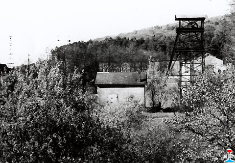 A gauche le chevalement / Förderturm de la Mine Heintzenberg; à
