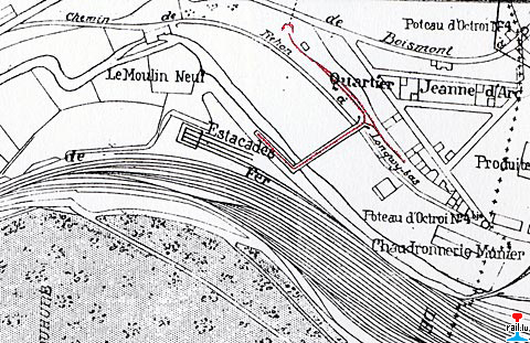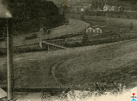 La passerelle - vue de derrière - au fond les voies de la ligne Longwy