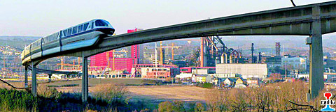 Vorschlag einer Monorail-Bahn (Alwegbahn) von „Groupe Guy Rollinger“ zwischen dem Universitätsgelände Belval und dem Flughafen Findel am 1.2010