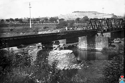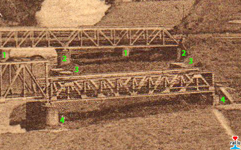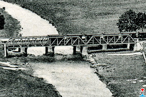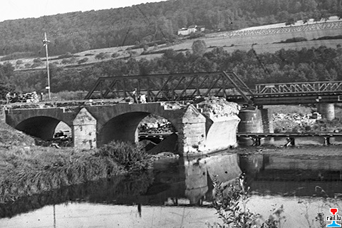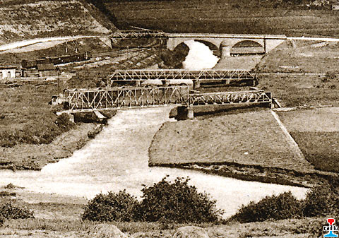 Bréck N° 1 (vir op der Foto, hannen drun ass d'Bréck N°2) : déi al Stroossebréck Ettelbréck - Dikrech (1944/45 zerstéiert, oder well virdrun?):