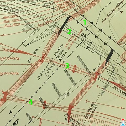 Neue Kornbrücke bei Kp. 1,335 der Attertlinie. Rechts daneben ist noch das Mauerwerk der alten Brücke eingezeichnet.(Collection: Marcel Schlim)