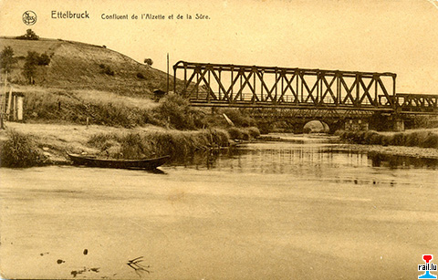 Pont routier et pont ferroviaire (ligne vers Diekirch) sur la Sûre, Ettelbruck - 1911 (Carte postale: Collection: Nico Beckerich)