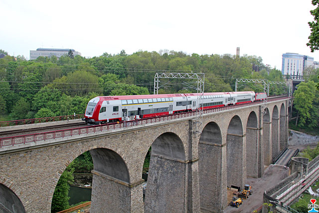 Automotrices CFL Z2015 et 2019 sur le viaduc à Esch/Alzette (Photo: 16.7.2011 René Birgen)