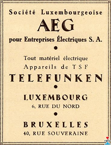 | 2.3.1921 | Fondation par - Gründung durch AEG 6 rue du Nord, Luxembourg Capital: 3.000.000 LUF |