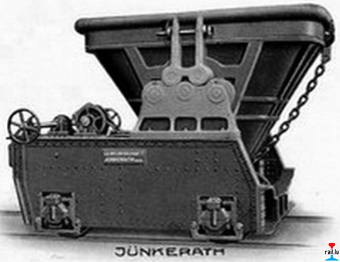 Jünkerather Schlackenwagen-Vorderkipper "Deutsch Oth" 4 cbm Inhalt, mit Hilfe der Lokomotive kippbar (Produktkatalog der Jünkerather Gewerkschaft - 1926)