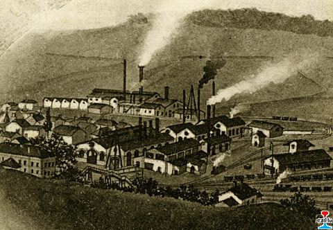Française Métallurgique - au fond l'Usine de Gorcy (Carte