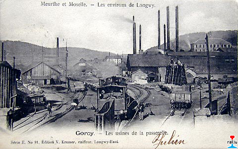 Gorcy - Les usines, par G. Peltier, Paris, vers 1908 (Exrtaits de la carte postale; Série