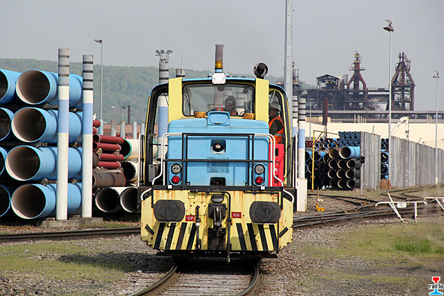 Locotracteur Moyse (AT1 MN 002; tare 60t; ex - ArcelorMittal) chez Saint Gobain PAM - vis-à-vis du Poste E1 de Pont-à-Mousson (Photos: 6.5.2013 jmo)