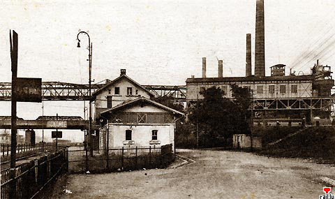 - La gare, le chemin de fer aérien et à la droite les Hauts-Fourneaux